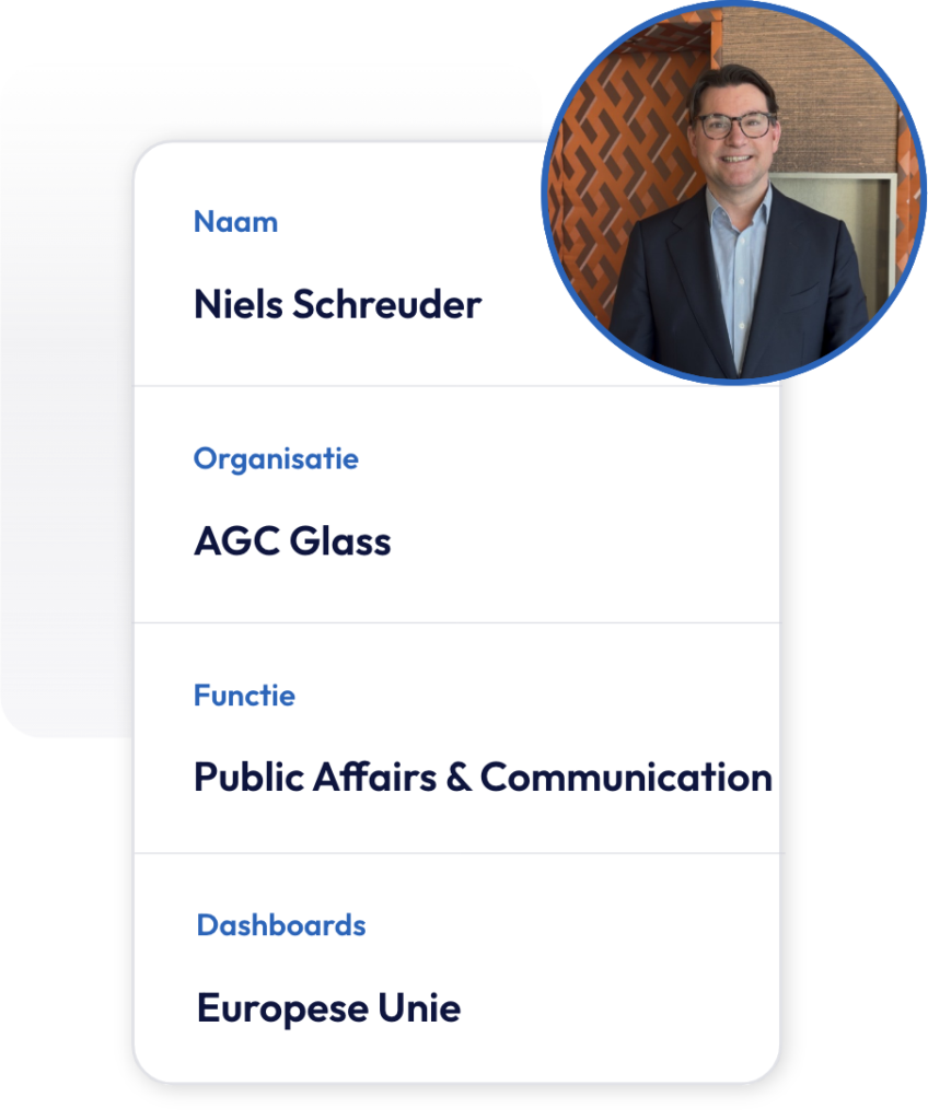 "Het is heel mooi dat we AGC Glass kunnen helpen bij hun monitoring. Dit laat perfect zien hoe wij bedrijven verder helpen in het automatiseren van politiek monitoren. Hiermee blijven ze automatisch op de hoogte van alles wat er in de EU gebeurt, wat best complex kan zijn door de grote hoeveelheid bronnen."